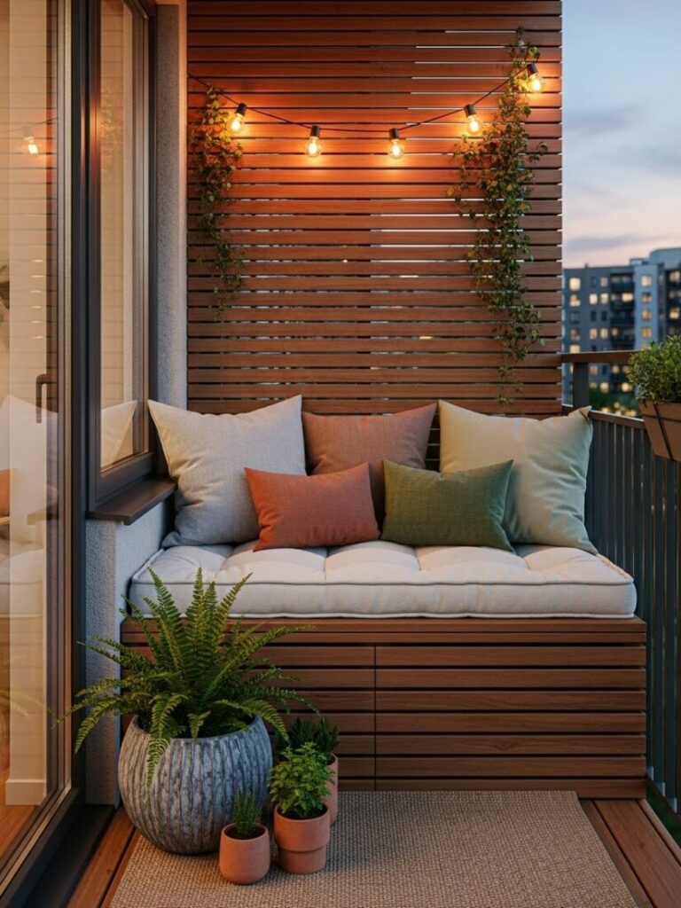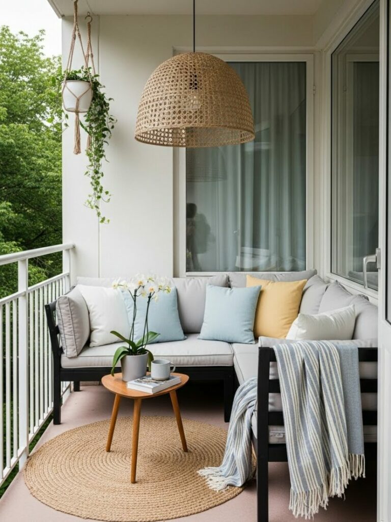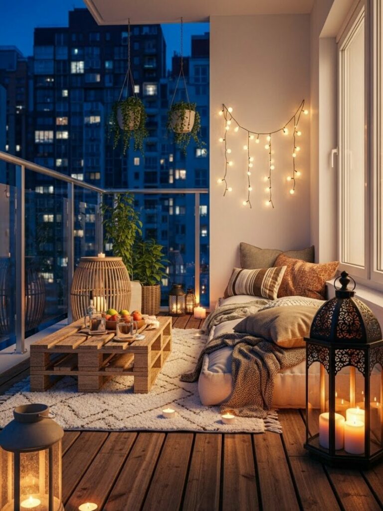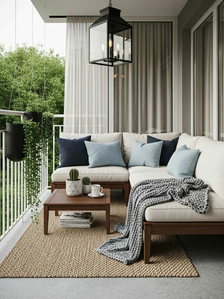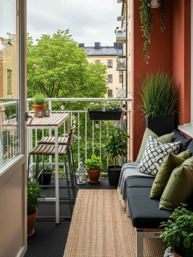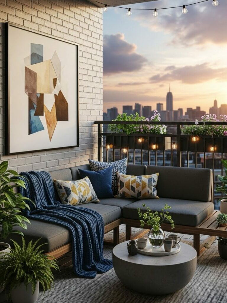 This draws the eye up and out. It makes the balcony feel like a finished room. You can mix vintage finds with modern prints.