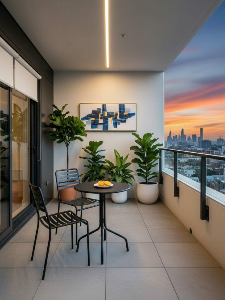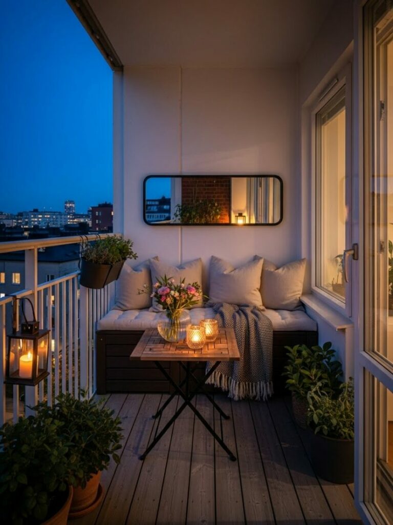 Use mirrors to manipulate space and light. A large mirror reflects the view, effectively doubling it. It makes a small balcony feel infinite.