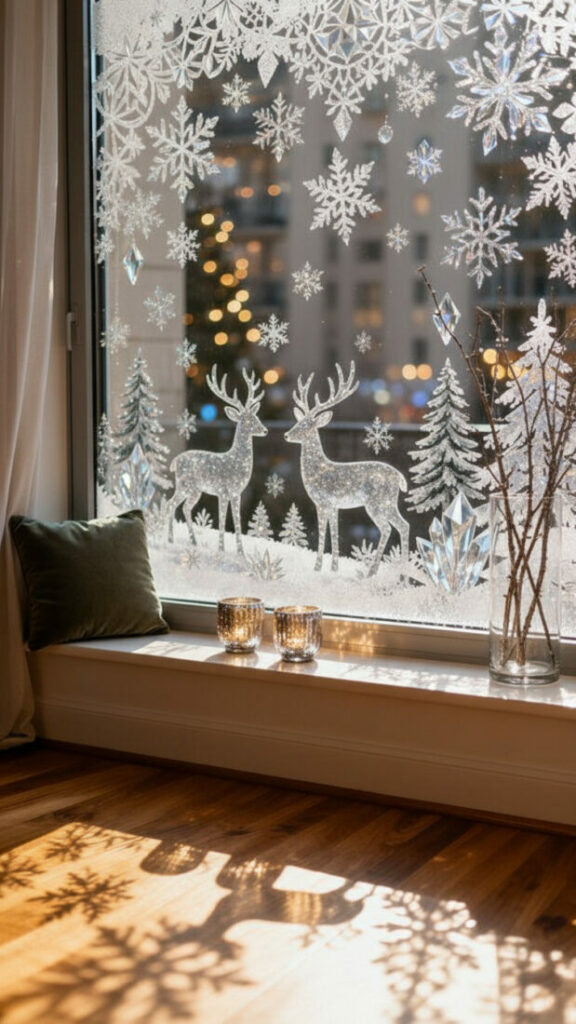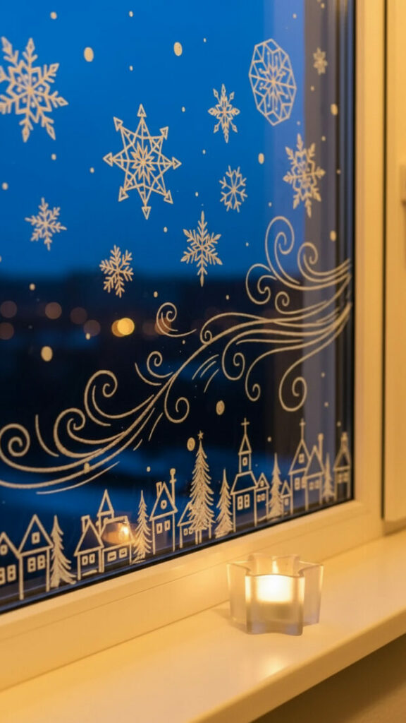 Decorating them creates a festive boundary between the cold outdoors and your cozy interior. It delights neighbors and passersby instantly. You can transform plain glass into a canvas of joy.