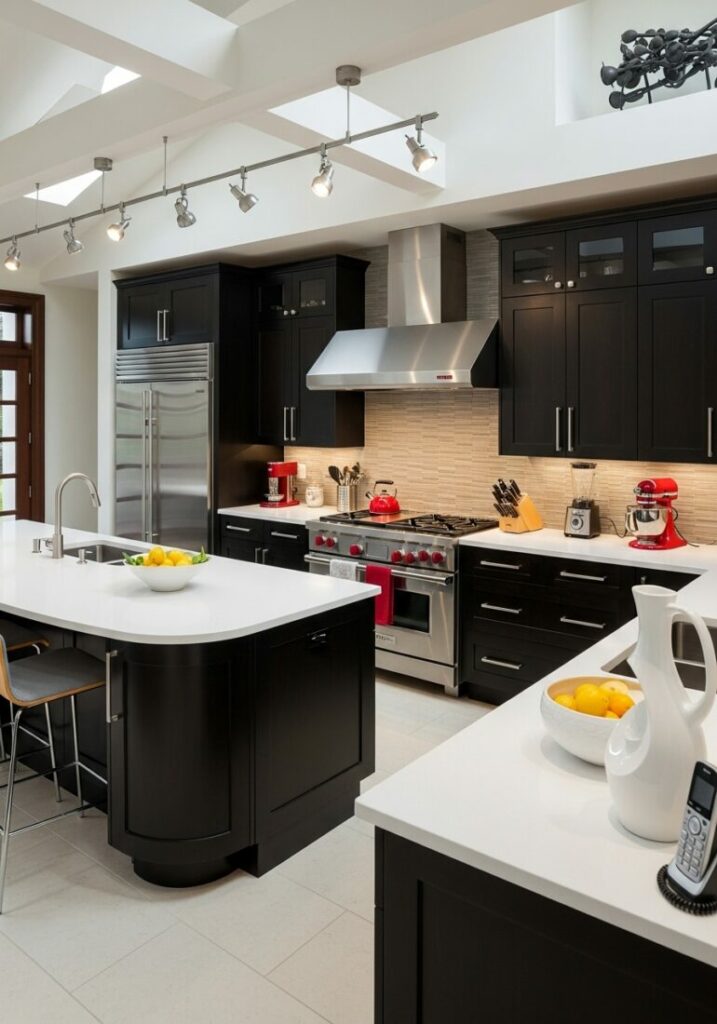 Your island choice directly impacts the room’s feel. Use a contrasting color to make it stand out. A black island defines a classic, bold look. A pop of bright bubblegum pink adds modern flair.