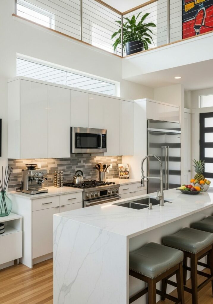Sleek marble or quartz offers a clean, luxe feel. This is ideal for contemporary or minimalist homes. The right material unifies the entire room’s design.
