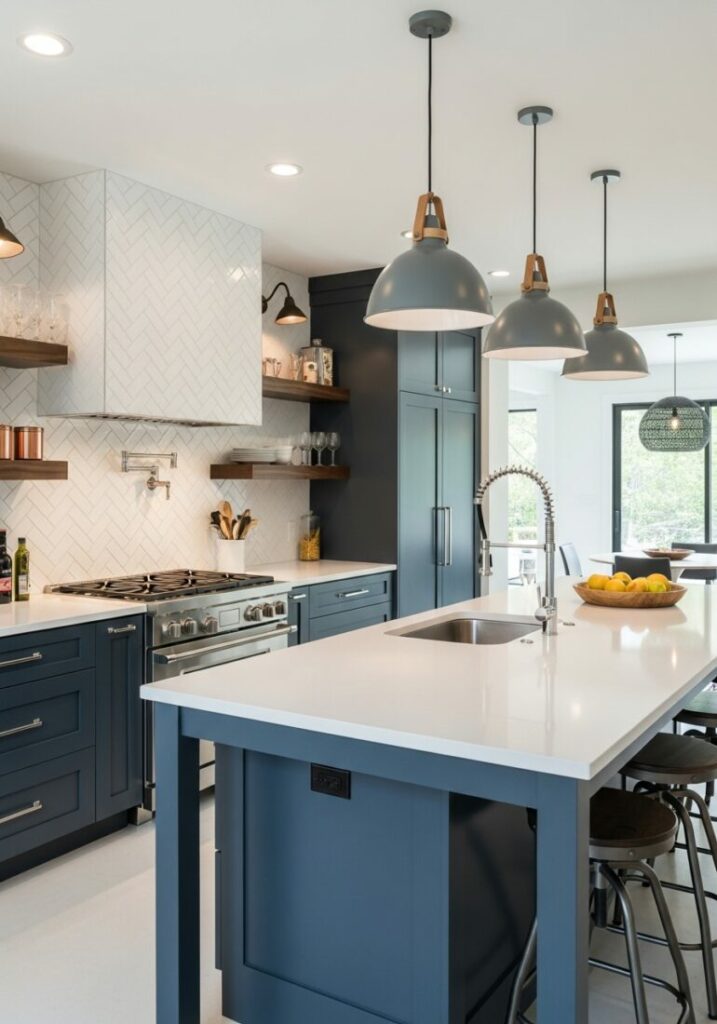 The shape of the island matters greatly. A long, narrow island works well in a galley kitchen. A square island can anchor a more open layout.