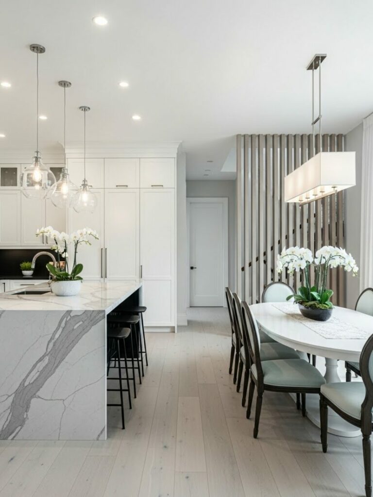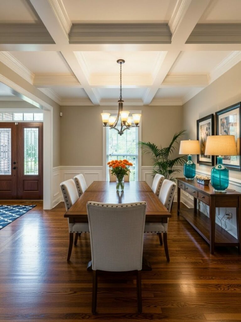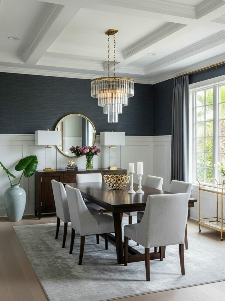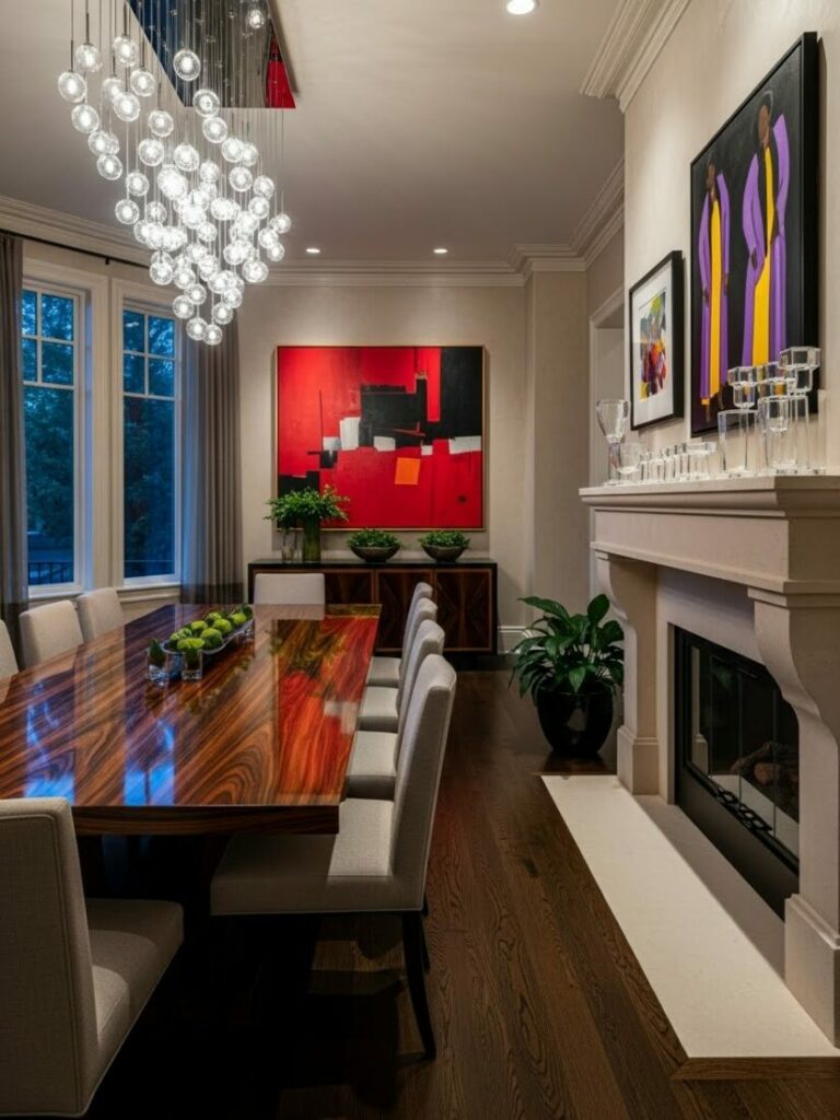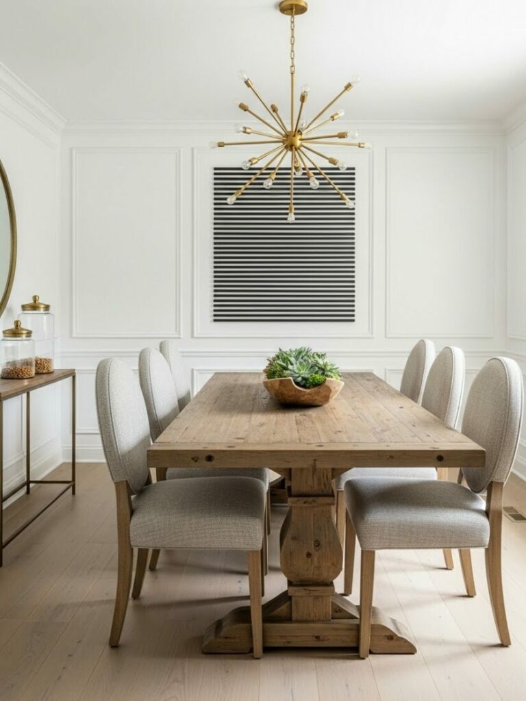Elevate your ceiling with a statement fixture. The chandelier is the jewelry of the dining room. Move beyond standard builder-grade fixtures.