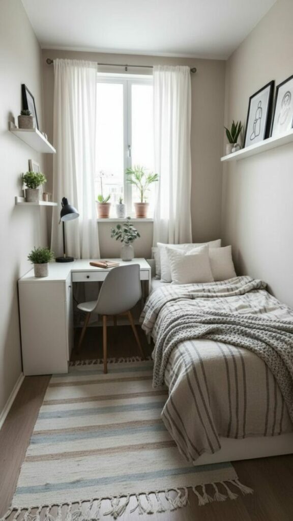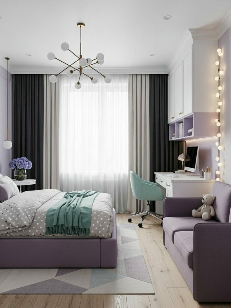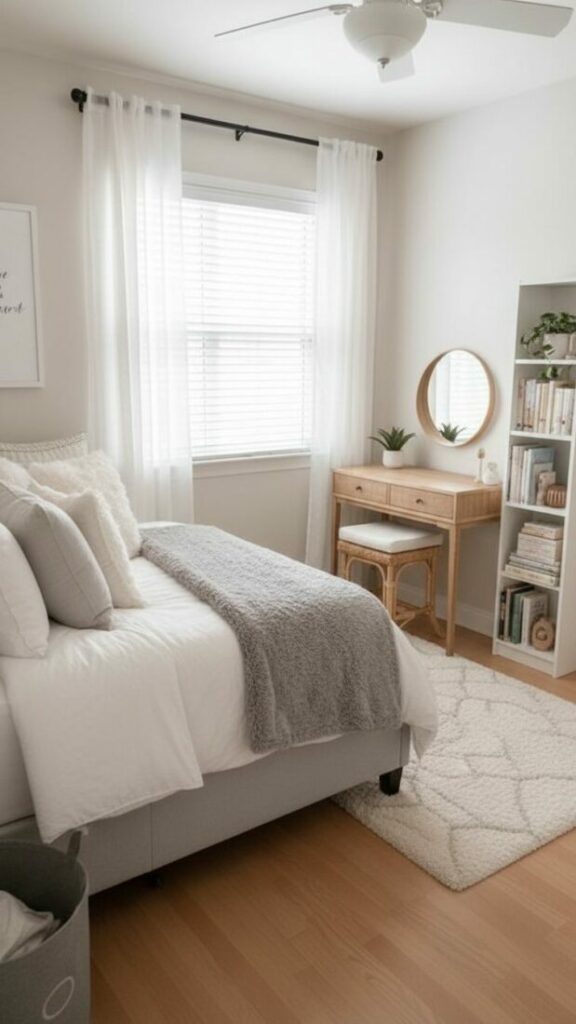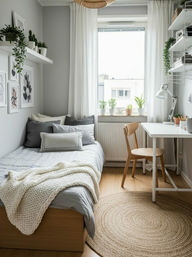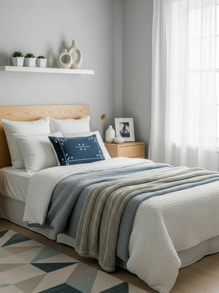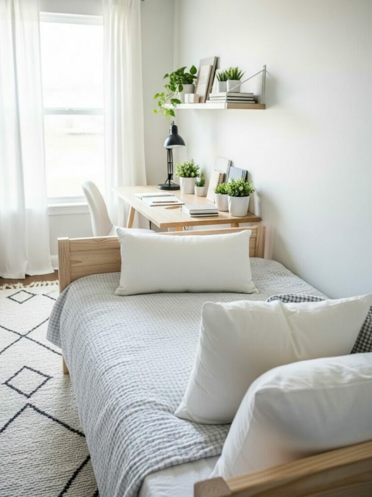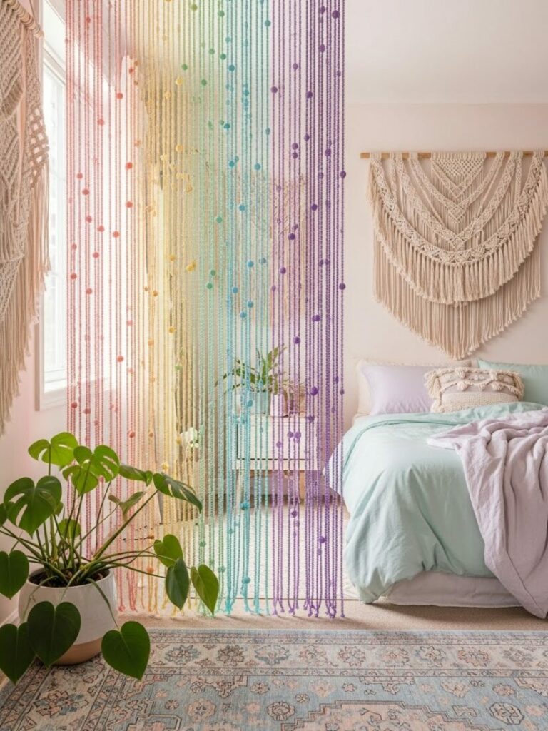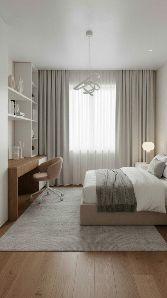 If your room is small, match the curtain color to the walls (white or cream). This expands the space. If you want cozy vibes, match them to your bedding.