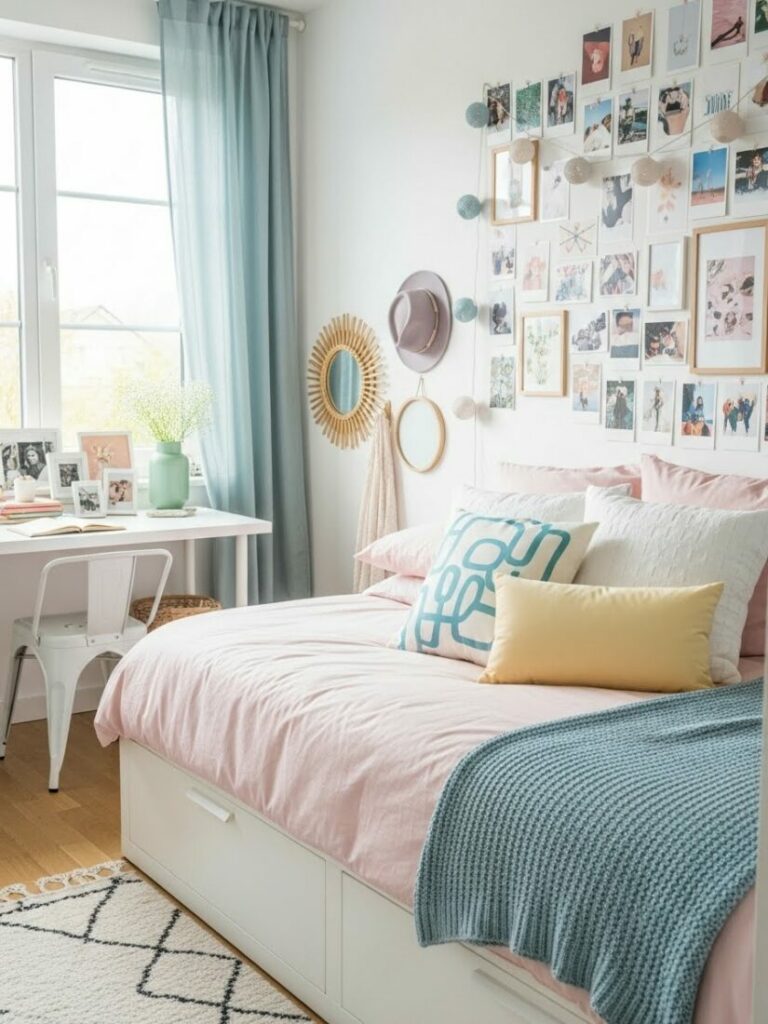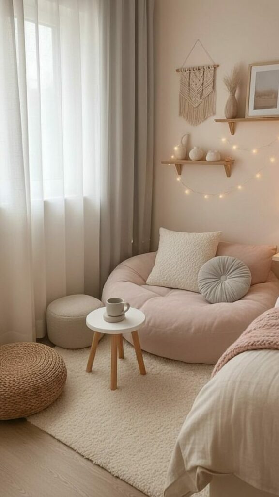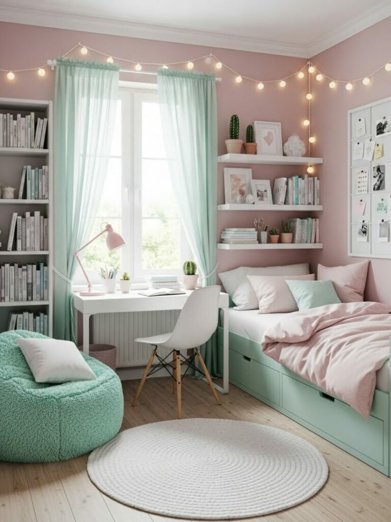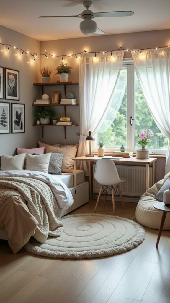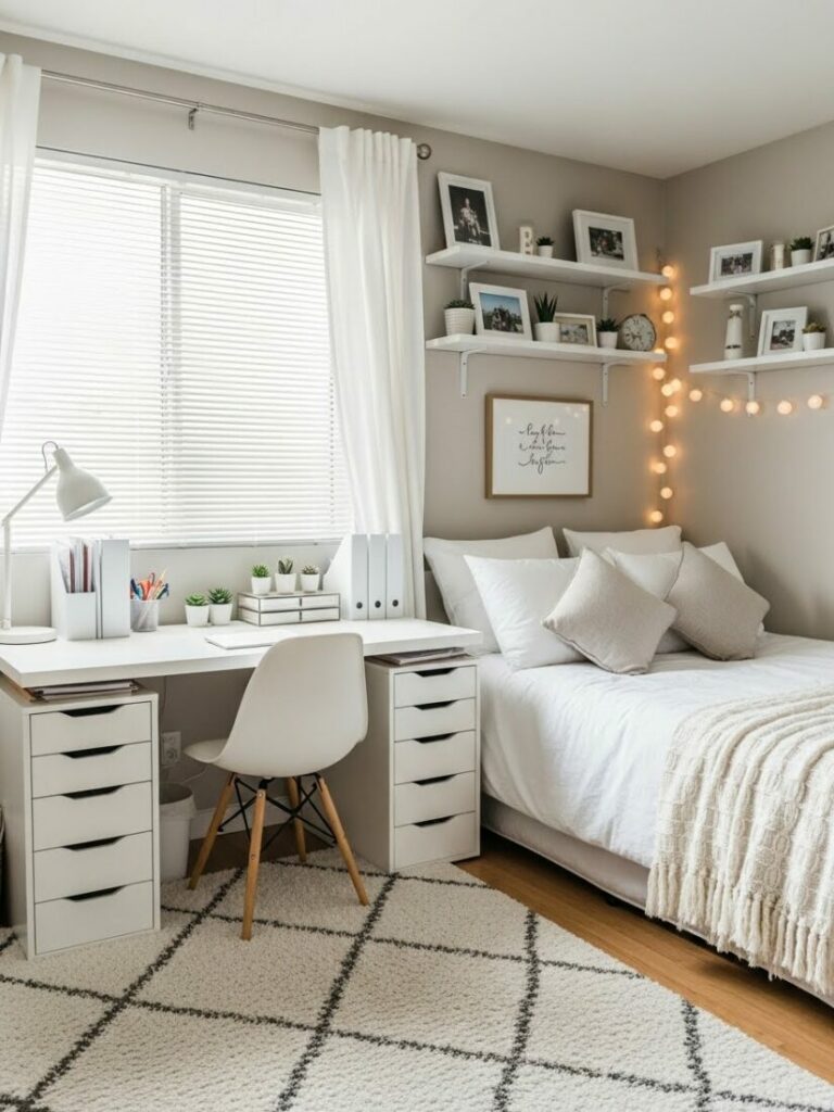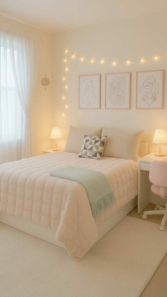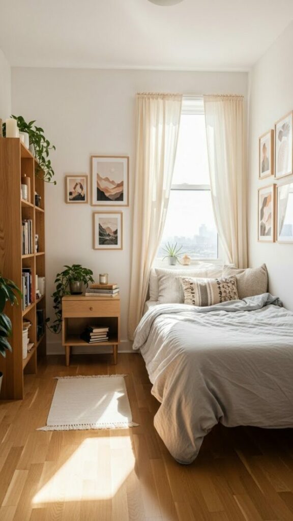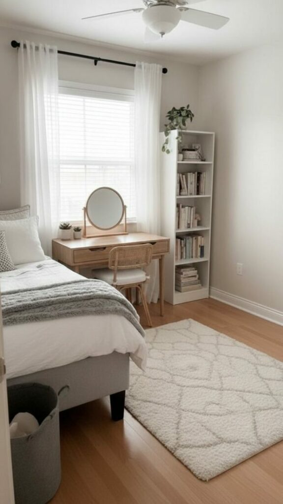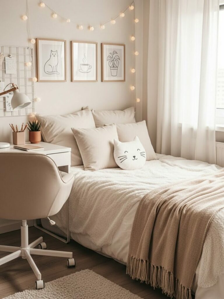 If your room is small, match the curtain color to the walls (white or cream). This expands the space. If you want cozy vibes, match them to your bedding.