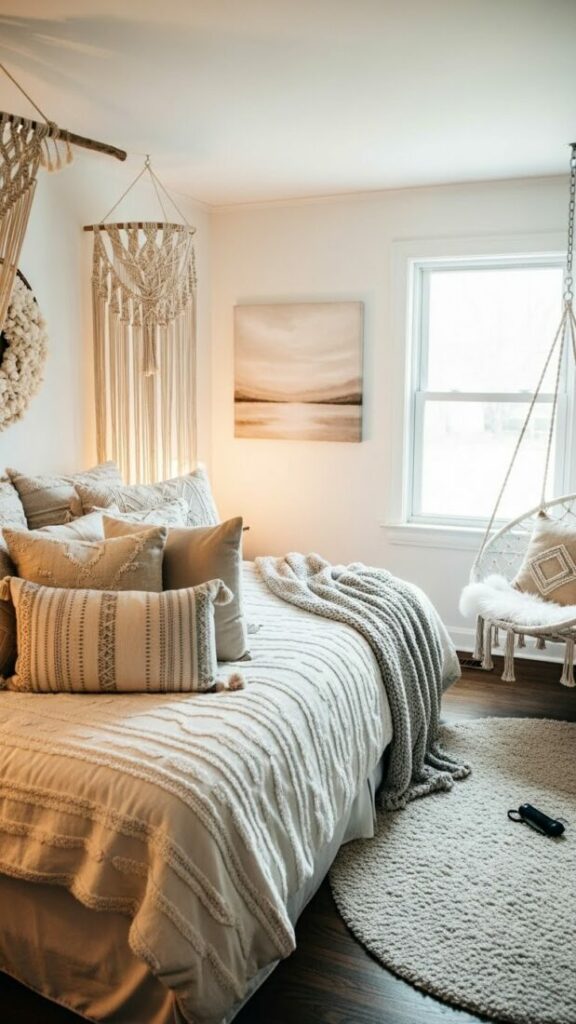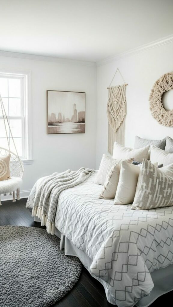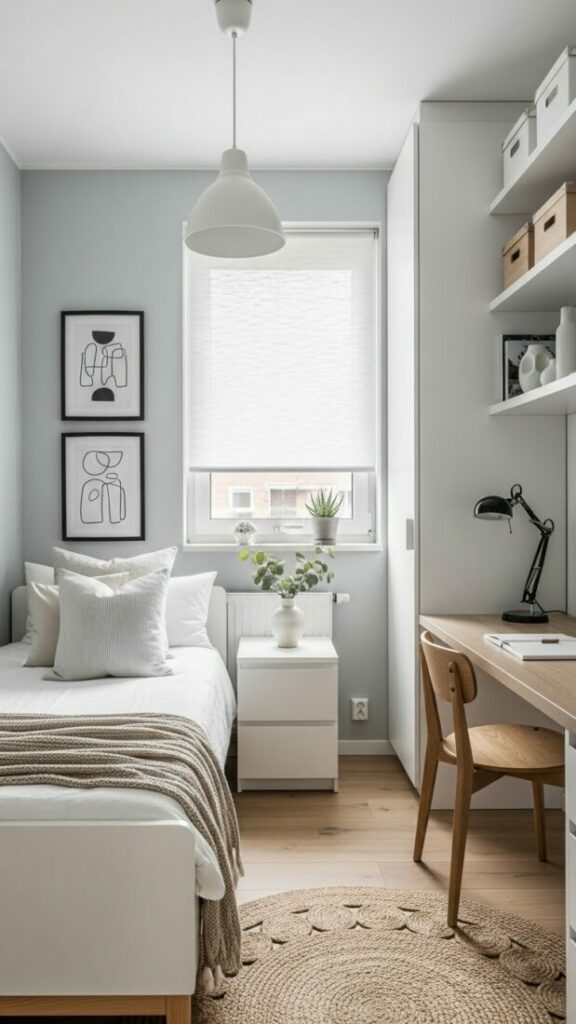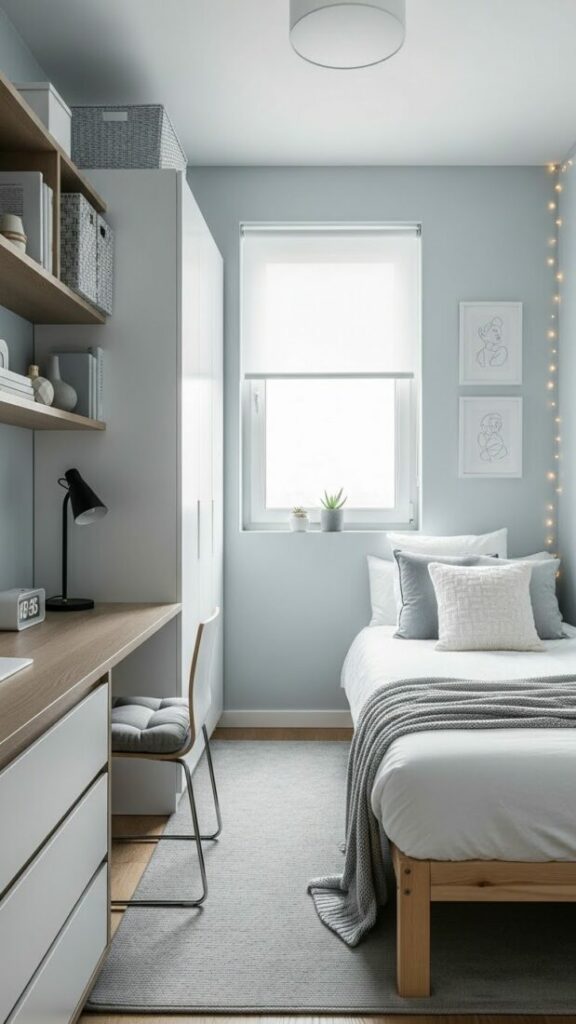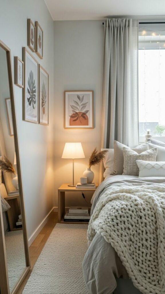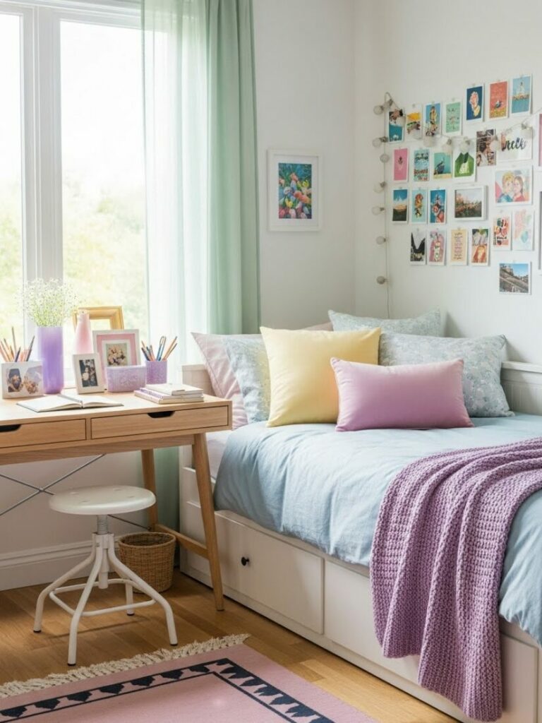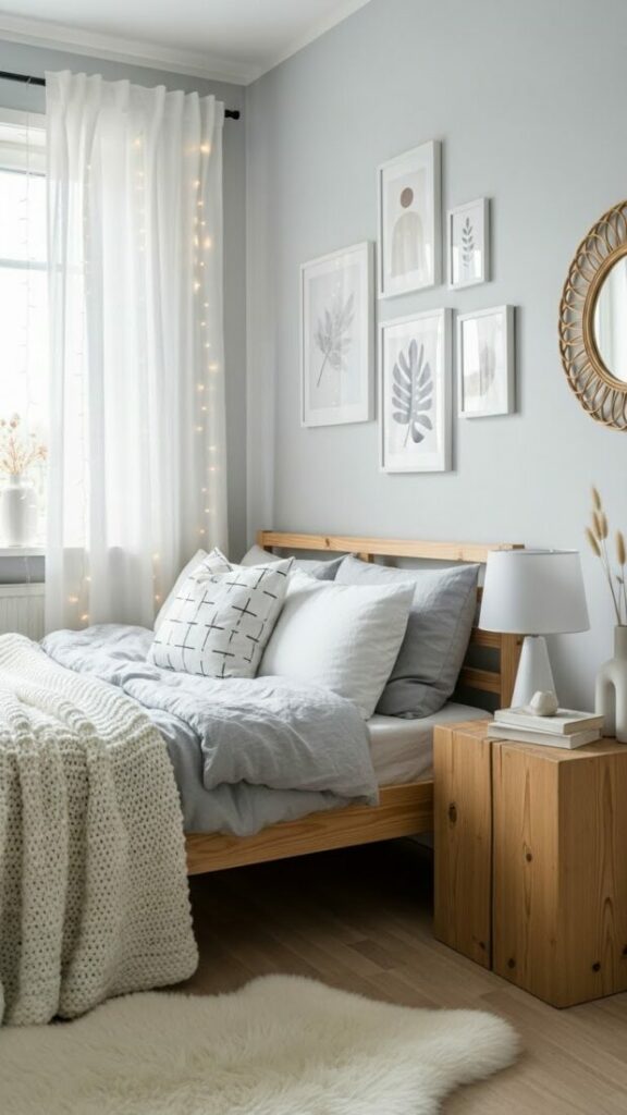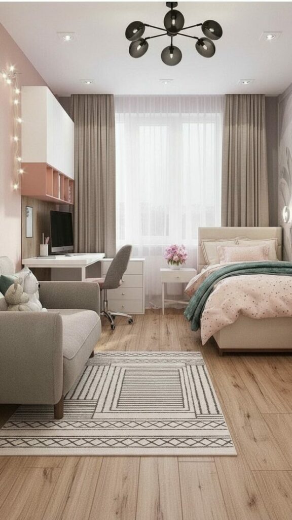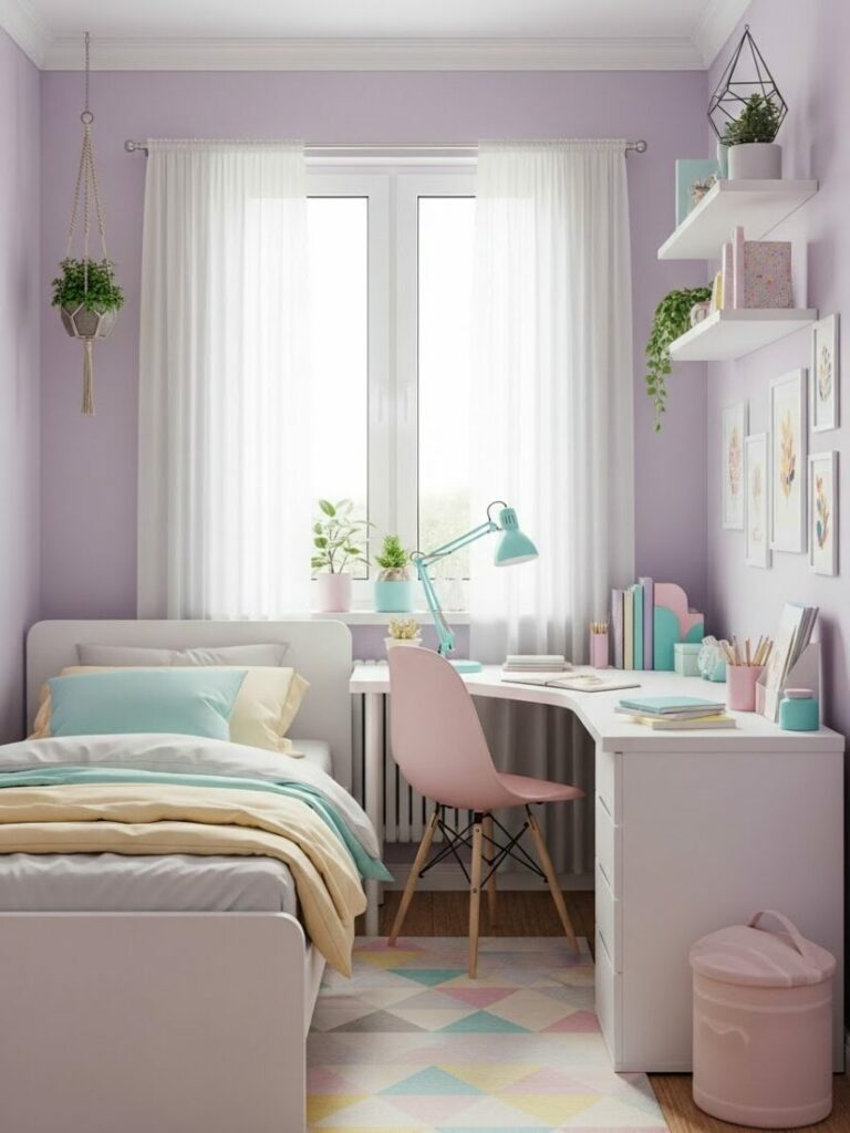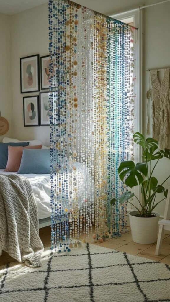 If your room is small, match the curtain color to the walls (white or cream). This expands the space. If you want cozy vibes, match them to your bedding.