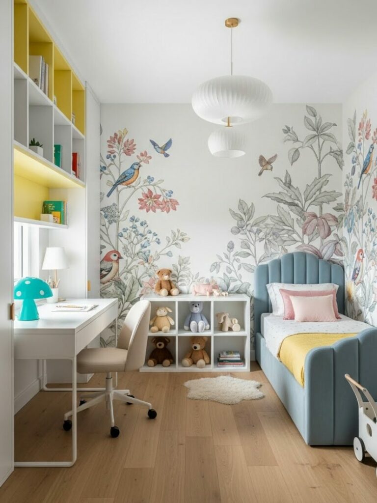 You do not need to cover every inch of wall. Eyes need to rest. Leave some white space. It allows the colored elements to breathe.