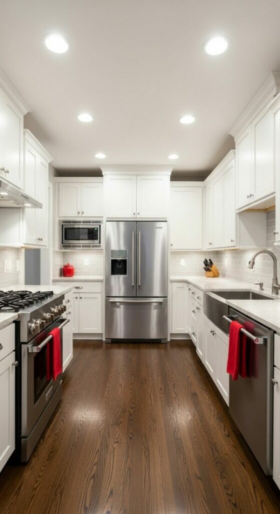For a touch of modern luxury, integrated appliances that sit flush with cabinetry offer a seamless and uncluttered look. Don’t be afraid to mix metals, either; pairing brass hardware with a matte black faucet can add a sophisticated, curated feel.