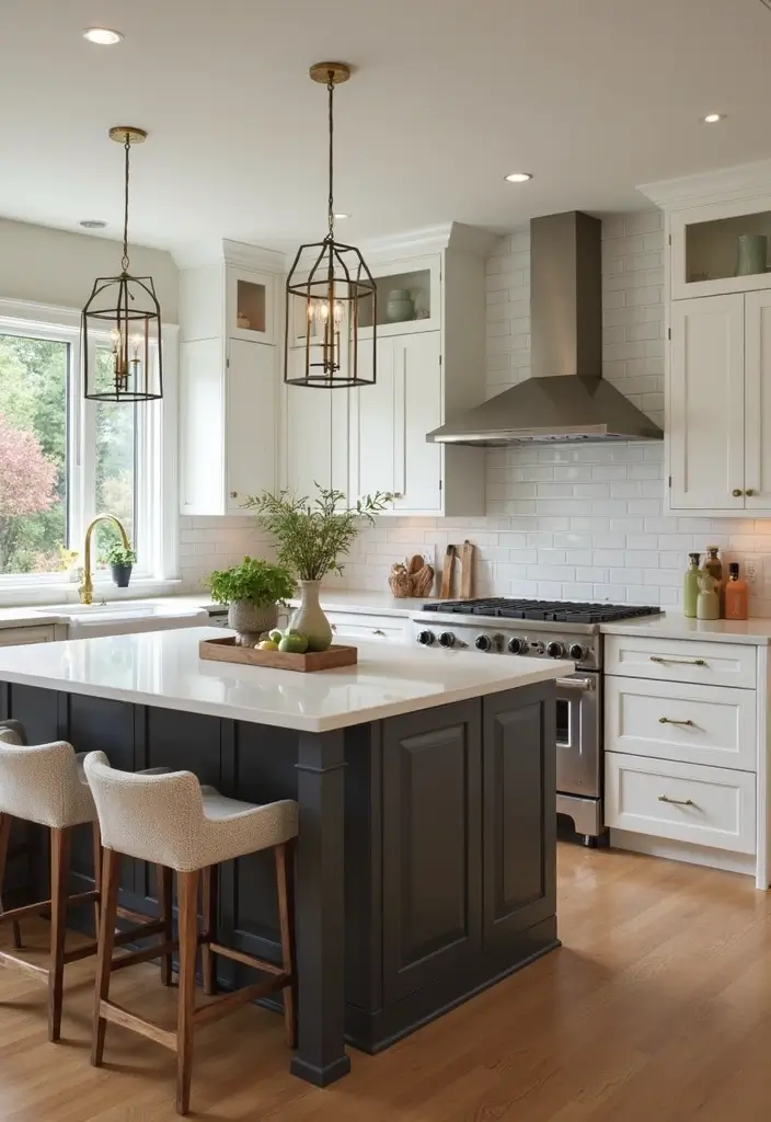 Does your kitchen island miss a focal point? Bold lighting fixtures can fix that fast. A large pendant or sculptural piece above the island draws the eye.