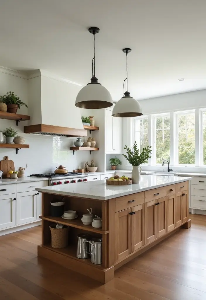 Open shelves on the island are a practical way to add personality. They keep what you use most close at hand. This is one of the most popular kitchen island trends.