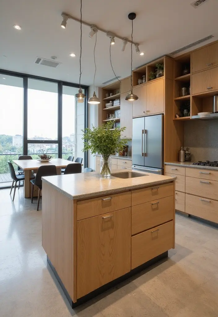 Incorporate a Reclaimed Wood Table Top for a warm surface. Add small stone accents like a Natural River Stone Cairn. Finally, place an Indoor Herb Garden Planter Set on the island for a touch of life.