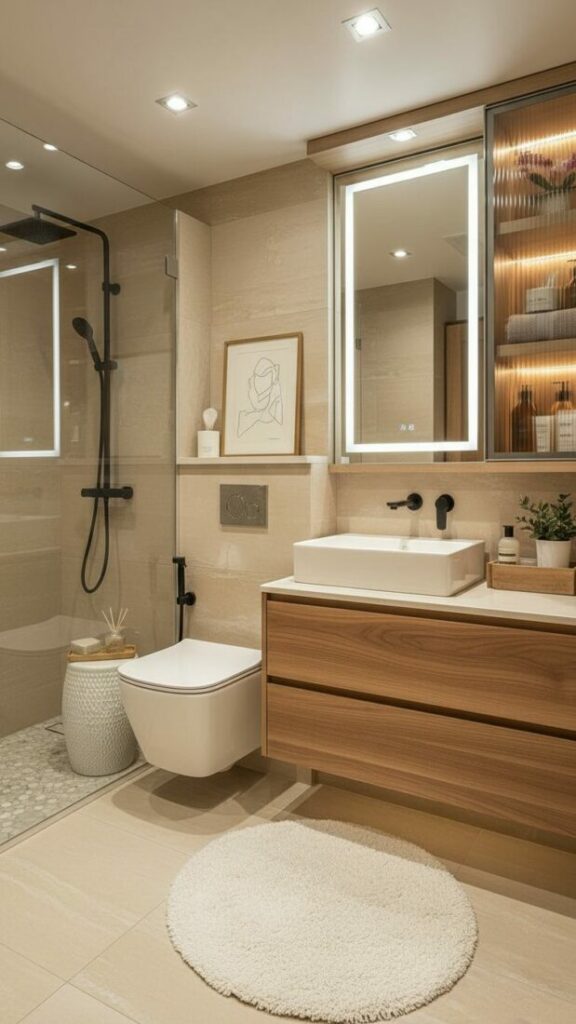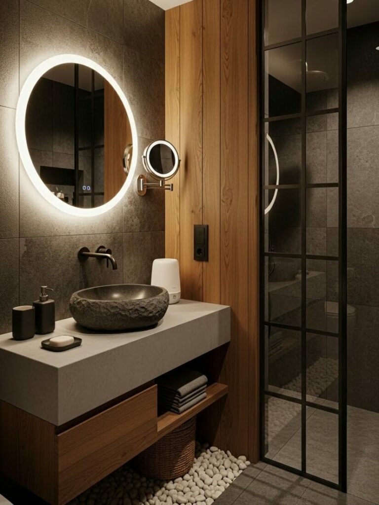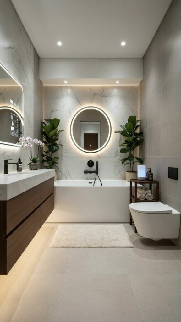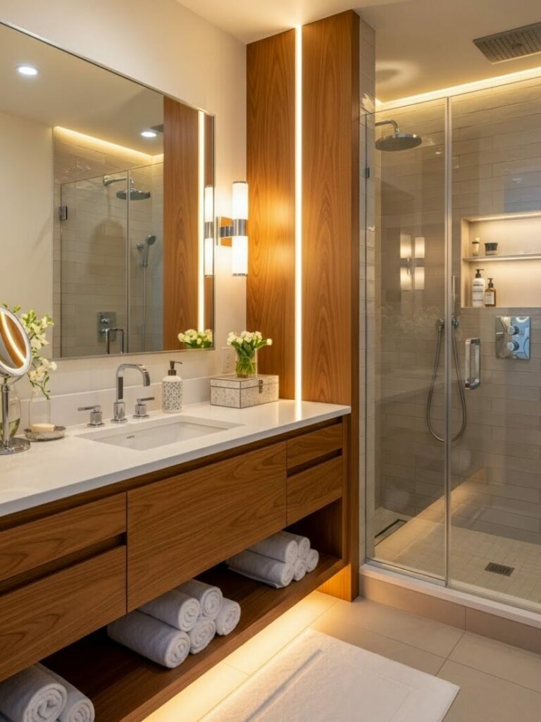 Standard lighting can cast harsh shadows that are unflattering for grooming tasks. A luxury bathroom should have layered, soft lighting that mimics a high-end hotel.
