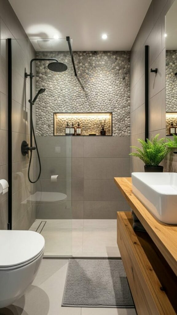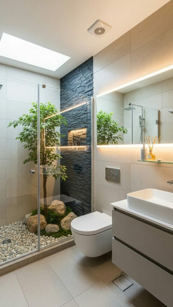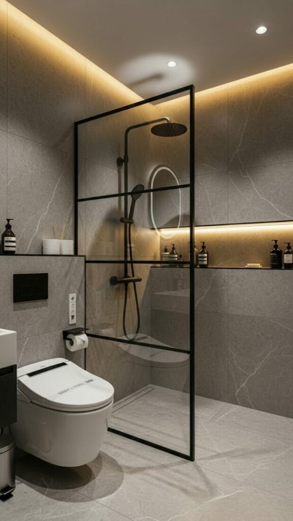 Install a Rainfall shower head (high pressure) for immersive water flow. It turns a daily chore into a relaxing ritual.