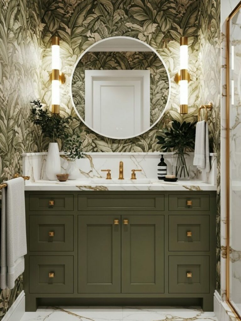 Place a potted orchid or eucalyptus vase on the counter. Plants thrive in humidity and add a fresh, spa-like element.