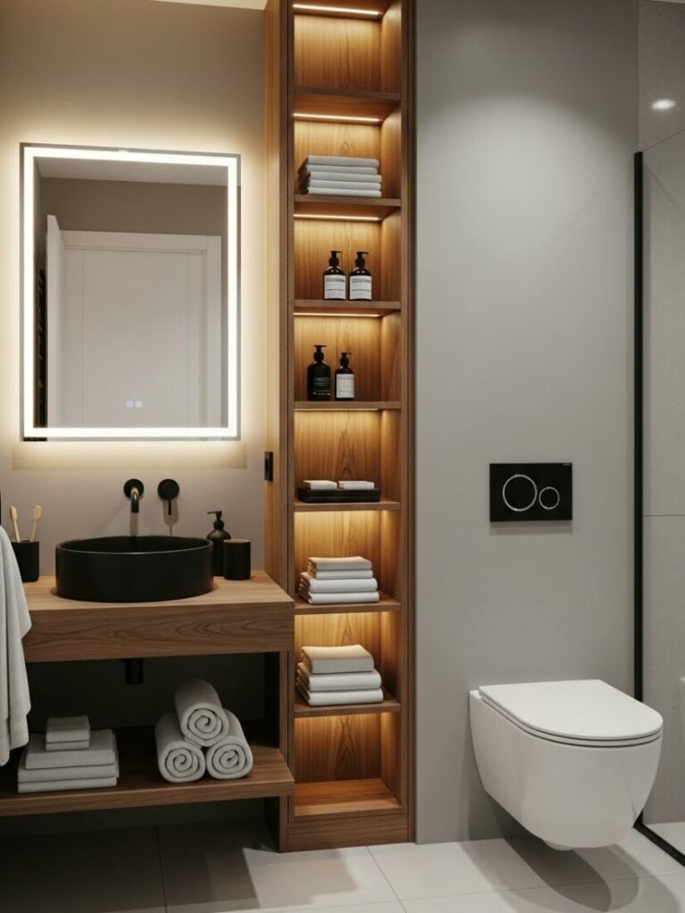 Install a Wall-mounted towel warmer to keep linens toasty and dry. Pair it with a Plush Turkish cotton towel set for comfort.