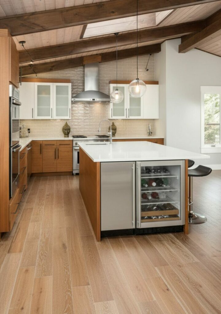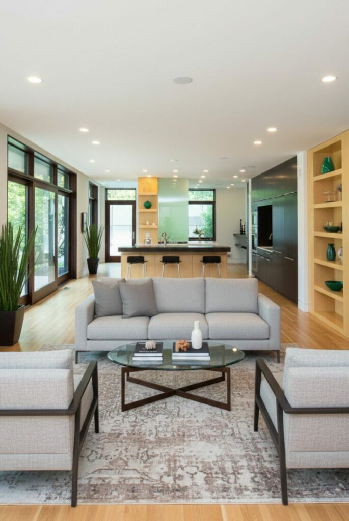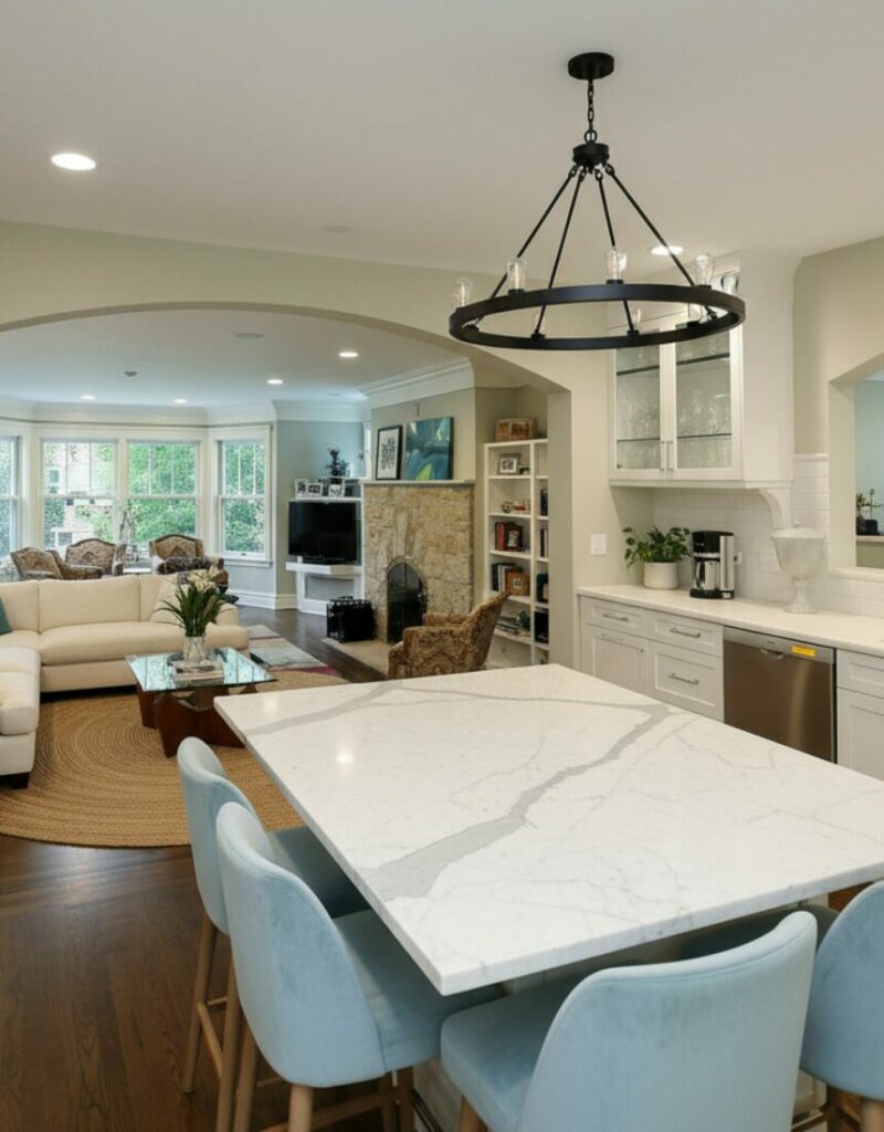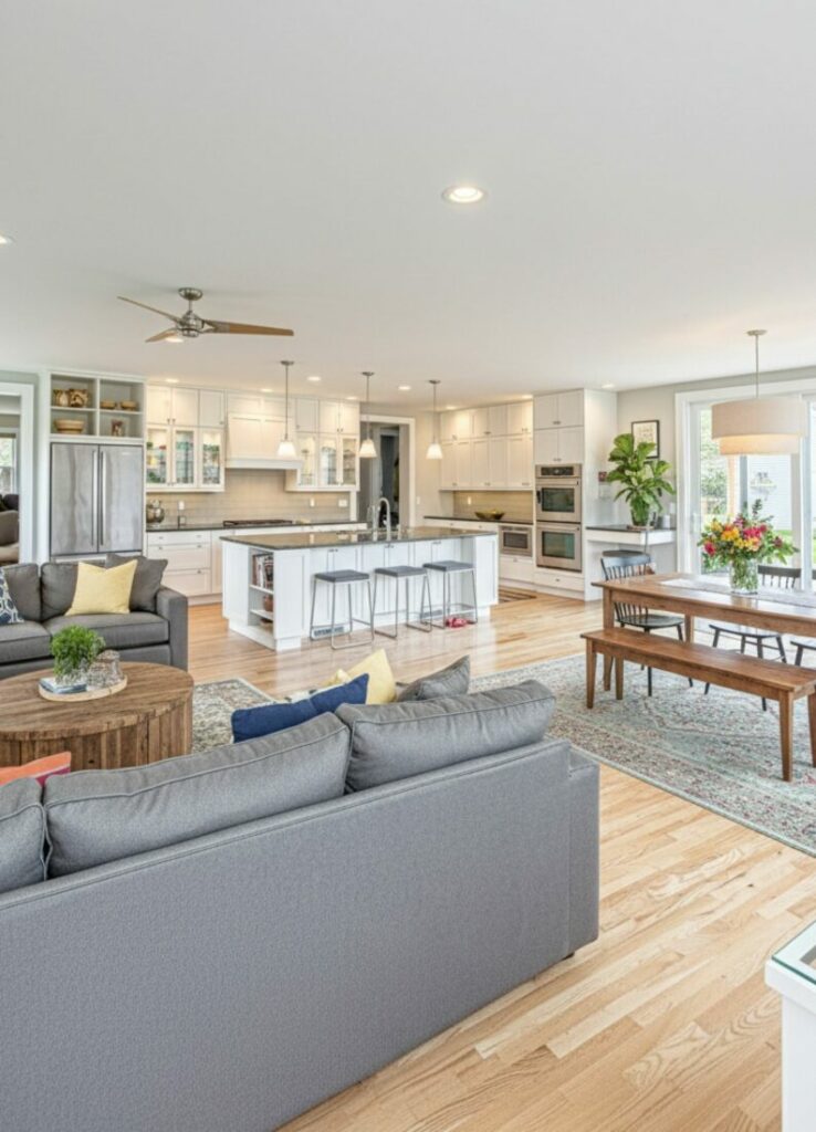 Natural light is vital for an open feel. If you removed walls but it’s still dark, add skylights. This floods the deep parts of the room with sun.