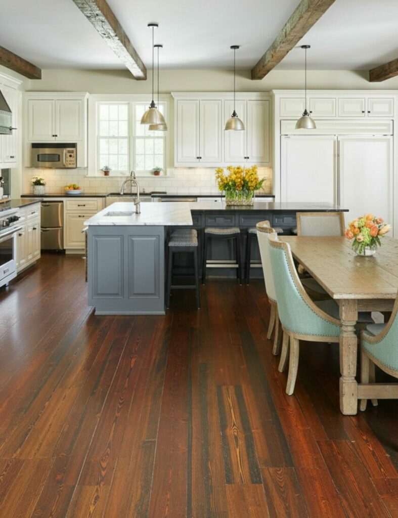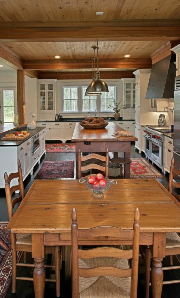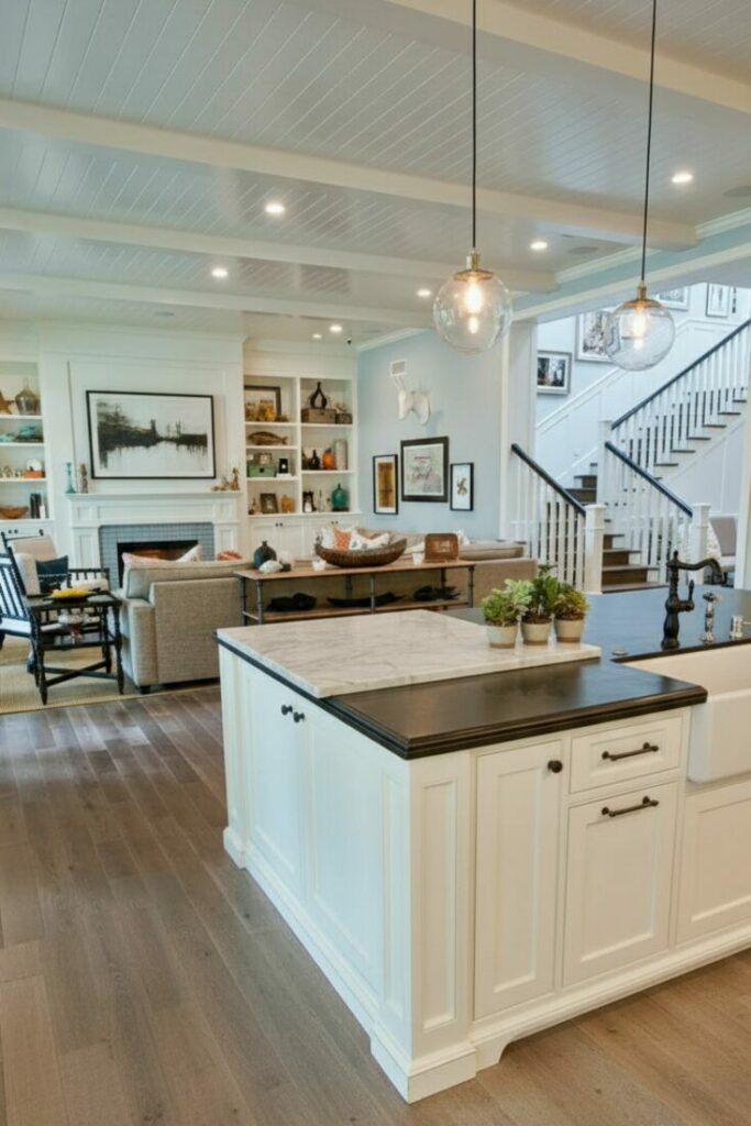 Open concept does not have to mean modern. You can embrace a vintage eclectic style. Mix antique furniture with modern appliances.