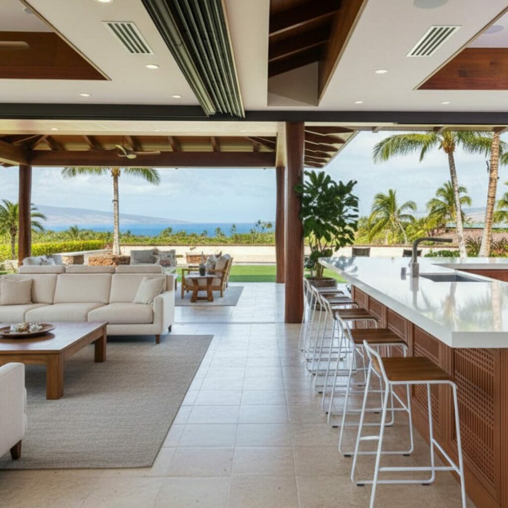 Extend your open concept to the outdoors. Install large bi-fold or sliding glass doors. This connects the kitchen to the patio.