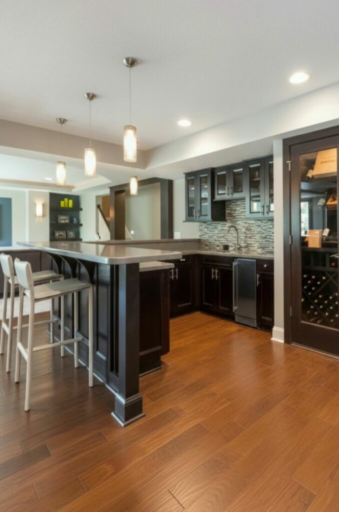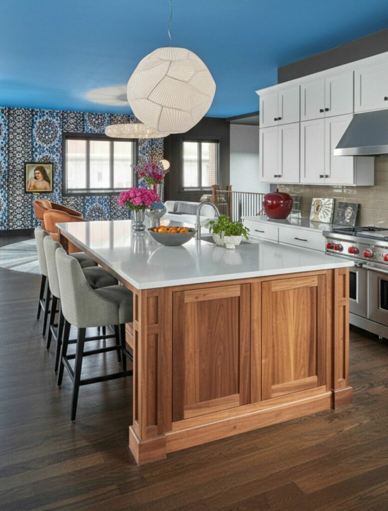To maximize this effect, choose a durable countertop material. Quartz or granite withstands heavy social use. Ensure there is an overhang for comfortable seating.