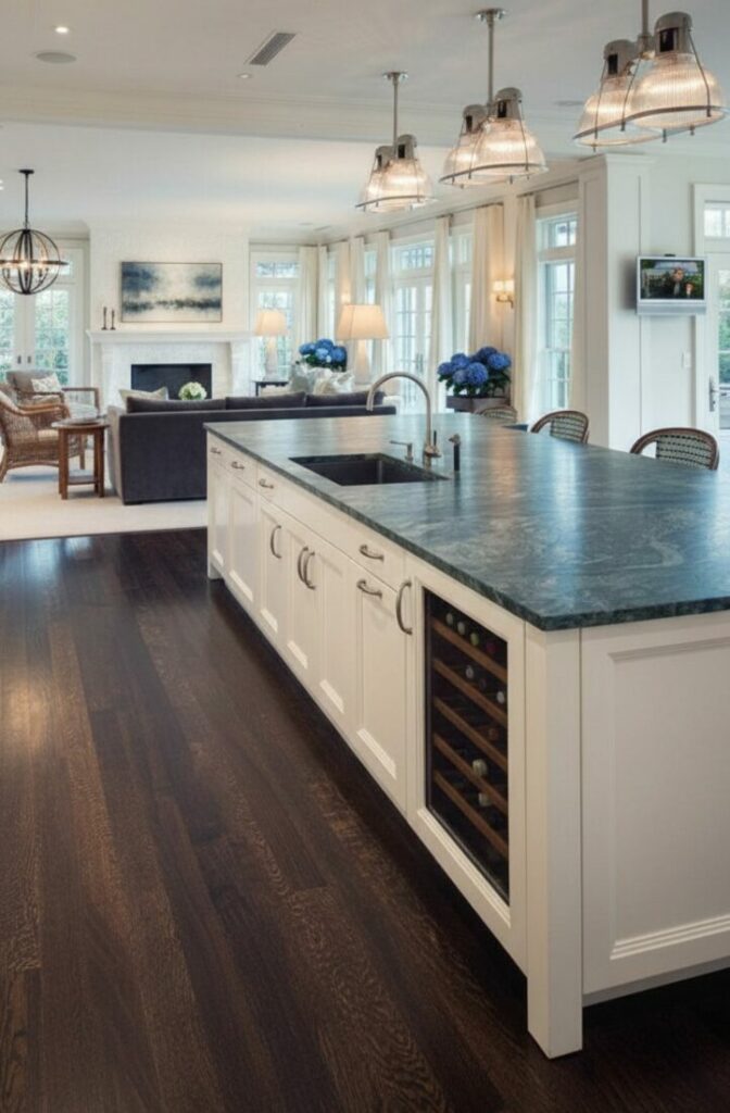 A large island often anchors the best open kitchen concept ideas. It serves as a bridge between the cooking and living zones. This piece of furniture invites guests to gather around.