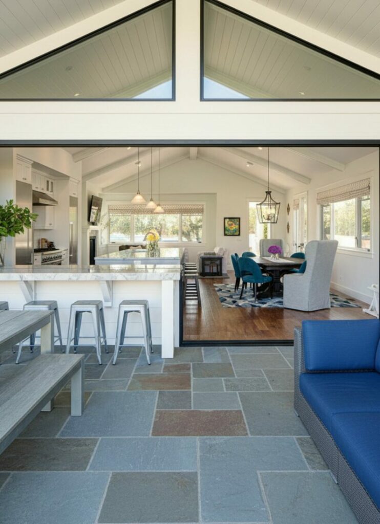 Use similar flooring materials indoors and out. This blurs the boundary even further. It makes the entire home feel expansive.