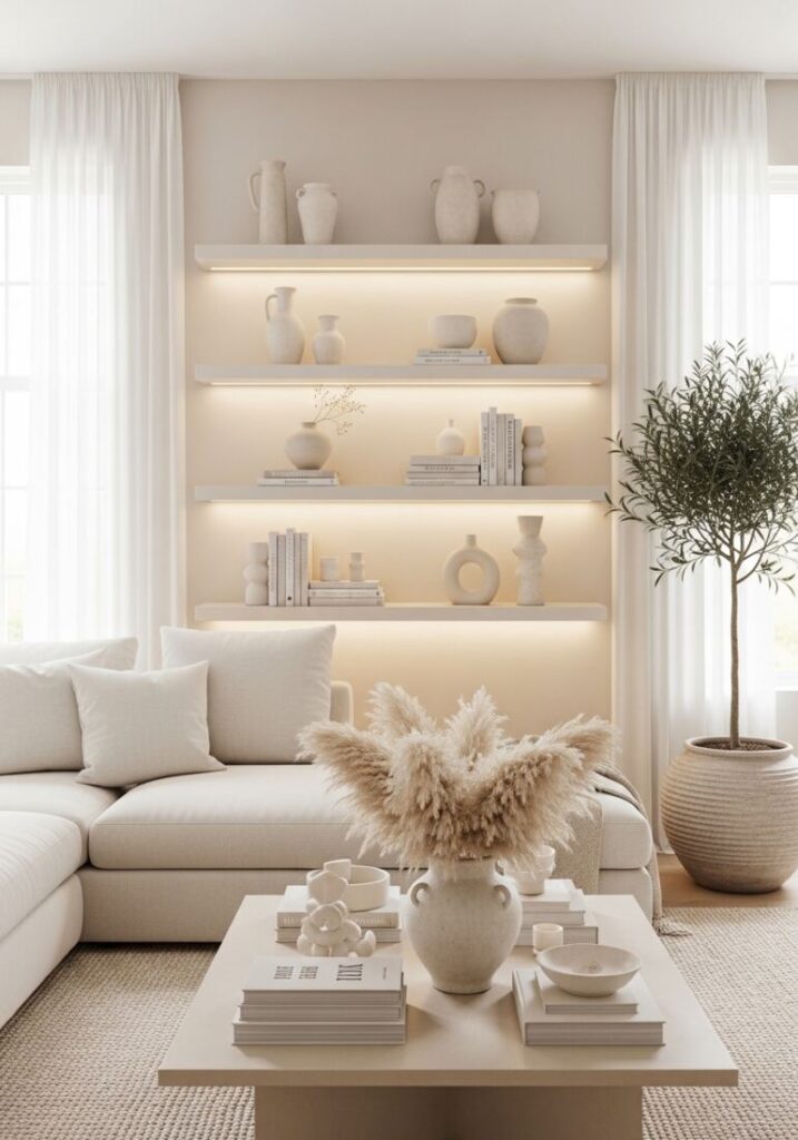 Don’t clutter shelves with hundreds of tiny things. Use fewer, larger items for a cleaner, more impactful look. A statement piece like a Ceramic Donut Vase (White) serves as a strong focal point.