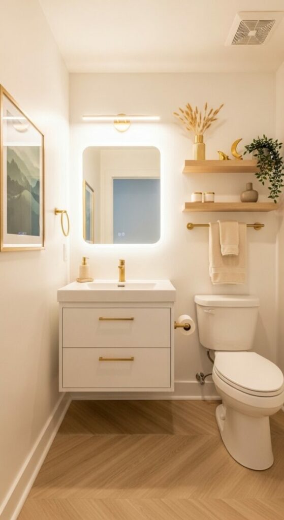 Scale is everything in small space decorating. A huge, bulky vanity will overwhelm the room. It will make the entire space feel cramped.