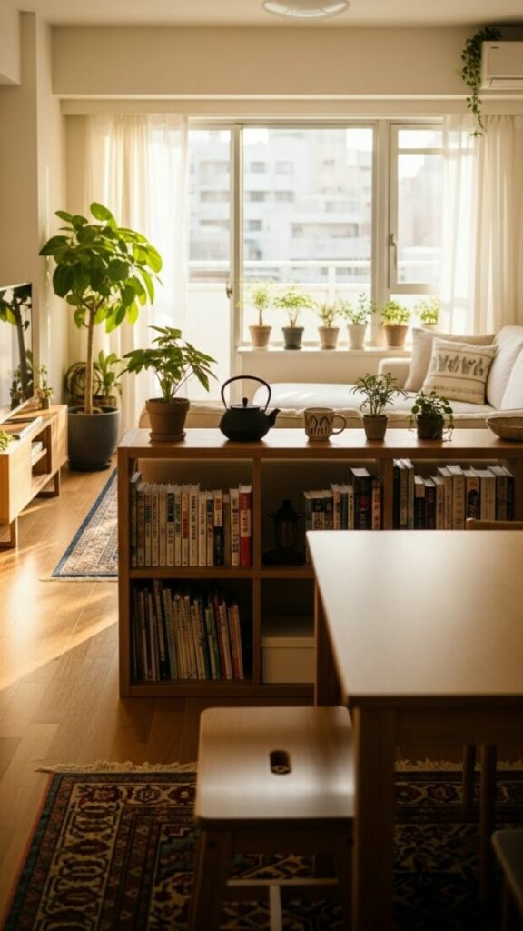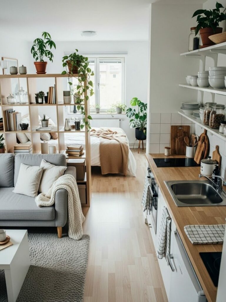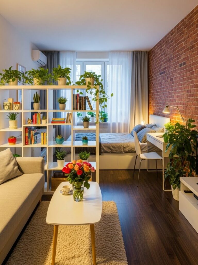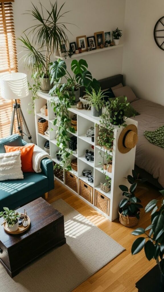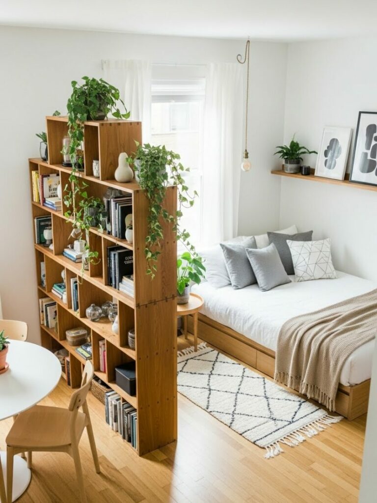 Separate your spaces smartly. Use an open shelving unit as a room divider. This defines zones while providing storage.