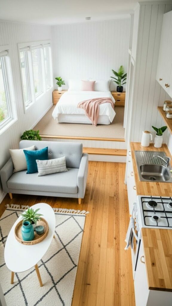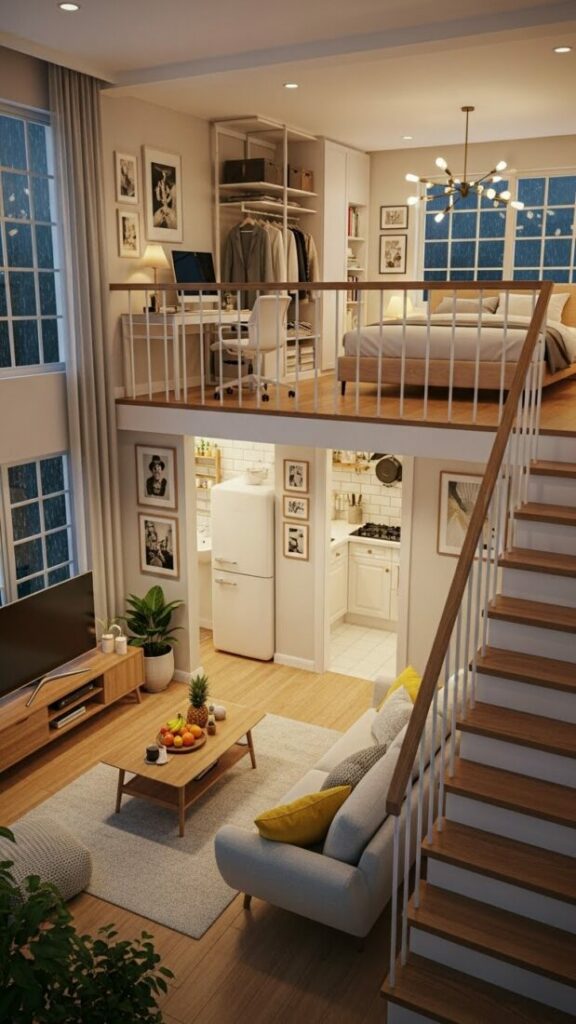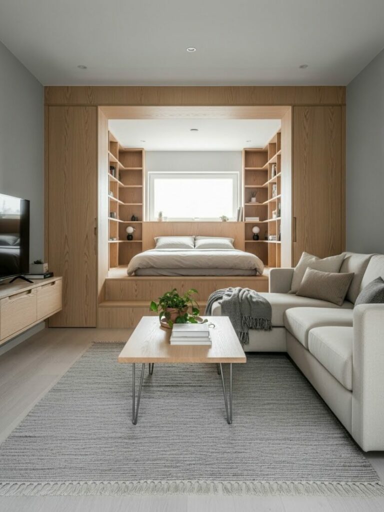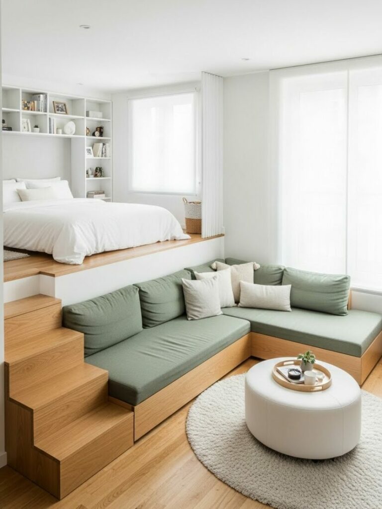 This effectively doubles the footprint of your sleeping area. It creates a distinct separation between sleep and living zones. It is perfect for a tiny studio apartment.