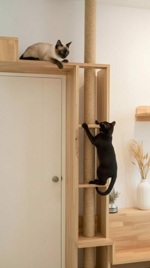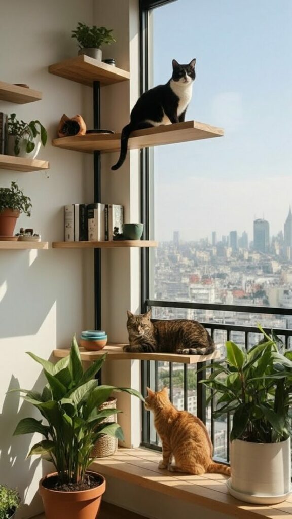 Cats are natural climbers who seek safety in height. This behavior is deeply ingrained in their DNA. Providing vertical cat territory reduces stress and builds confidence.