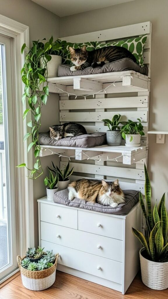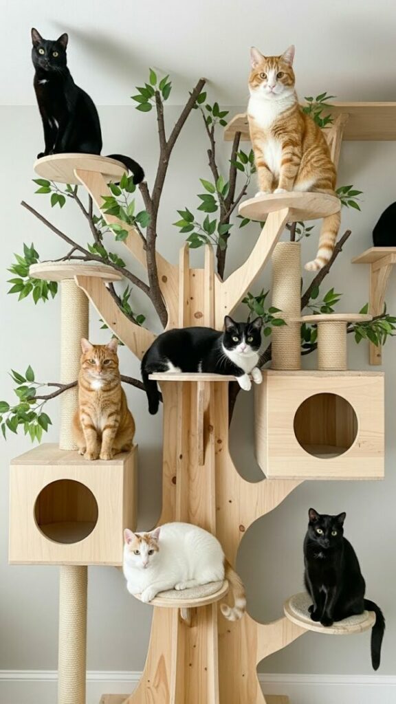 This creates a whimsical and natural look. It taps into the cat’s instinct to climb trees. It works beautifully in a boho or rustic room.